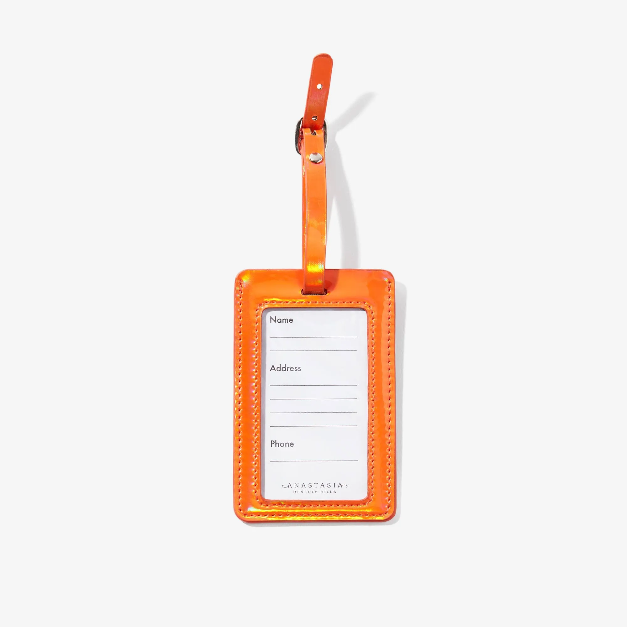 Anastasia Beverly Hills Luggage Tag is perfect for the makeup aficionado on the go. Make sure your most precious cargo (your makeup. obviously) is protected with this statement-making luggage tag. Featuring Please don’t lose my makeup bag!? or Please don’t shatter my palette!? and Anastasia branding on the back. this cute yet sturdy tag is the best way to give your luggage the first-class treatment. Available in 3 different metallic colors.